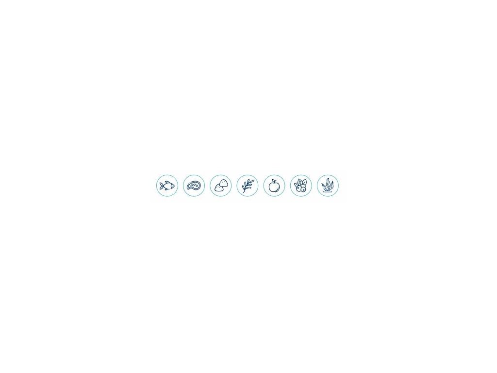 Složení: maso (čerstvé rybí maso ze sledě 21,6 %, dehydrované hovězí maso 20,6 %, čerstvé hovězí maso 11,2 %, dehydrované rybí maso 4 %), rýže, drůbeží tuk, hrách, sušená jablečná dužina, řepná vláknina, hydrolyzovaný rybí protein 3 %, kvasnice, lososový olej, minerální látky, Ascophyllum Nodosum (Kelpa) PlaqueOff 0,1 %, brusinka, glukosamin, chondroitin sulfát, Yucca schidigera.