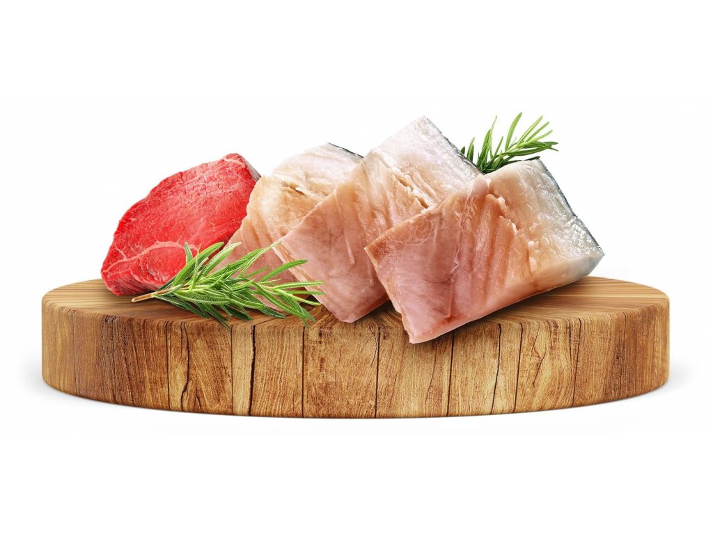 - Obsahuje čerstvé rybí a hovězí maso, které je zdrojem bílkovin pro posílení svalů