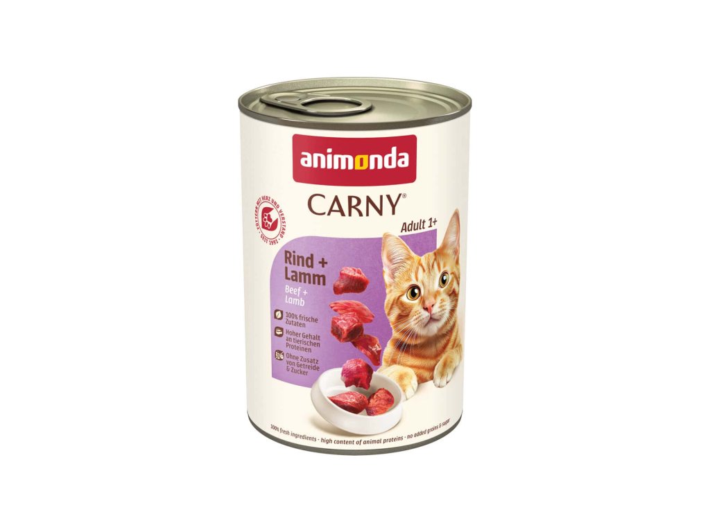 Kočky jsou striktní masožravci a ANIMONDA Carny Adult hovězí a jehně jim nabízí přesně to, co potřebují – čerstvé maso a vnitřnosti bez zbytečných náhražek.