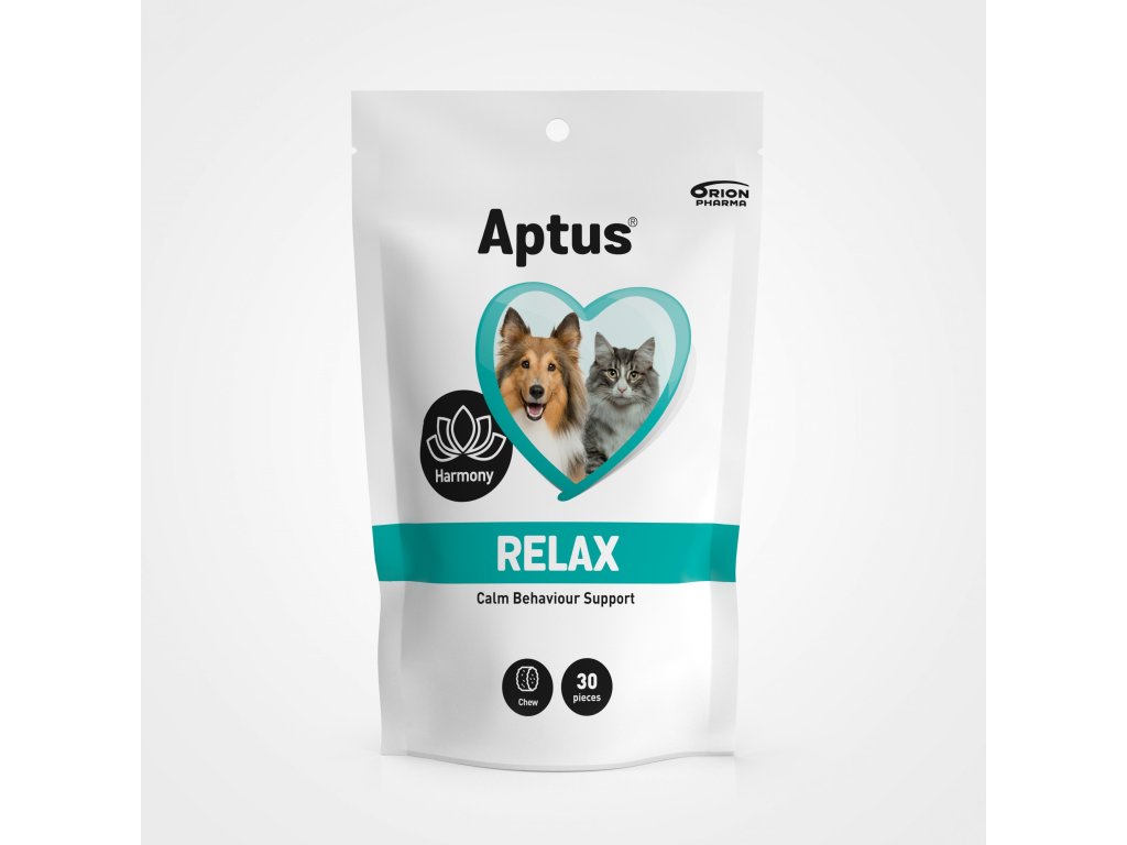 APTUS RELAX je doplňkové krmivo ve formě žvýkacích tablet s vynikající chutí pro potlačení chování souvisejícího se stresem: bouřky, hromy, ohňostroje, oslavy, návštěva veterináře nebo stříhání, separační úzkost, cestování nebo přemísťování. Aptus RELAX podporuje klidné a vyrovnané chování a vnímání u psů a koček.