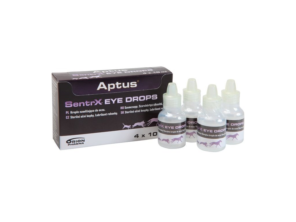 Aptus SentrX oční kapky je lubrikant rohovky obsahující biopolymery - modifikovanou zesíťovanou kyselinu hyaluronovou. Poskytuje dlouhotrvající zvlhčení a lubrikaci oční rohovky, čímž potlačuje symptomy tzv. “suchého oka” (KCS, keratokonjunctivitis sicca). Tyto oční kapky jsou určeny pro psy se syndromem tzv. “suchého oka”, a pro všechny ostatní případy vyžadující zvlhčení a lubrikaci oční rohovky.