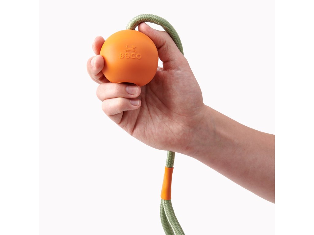 Míček z přírodního kaučuku na silném laně z recyklovaného materiálu. Váš pes se snadno zakousne do pružného gumového míčku a lano Vám poskytne dodatečný švih při házení do dálky. Ideální pro aportování a přetahování.