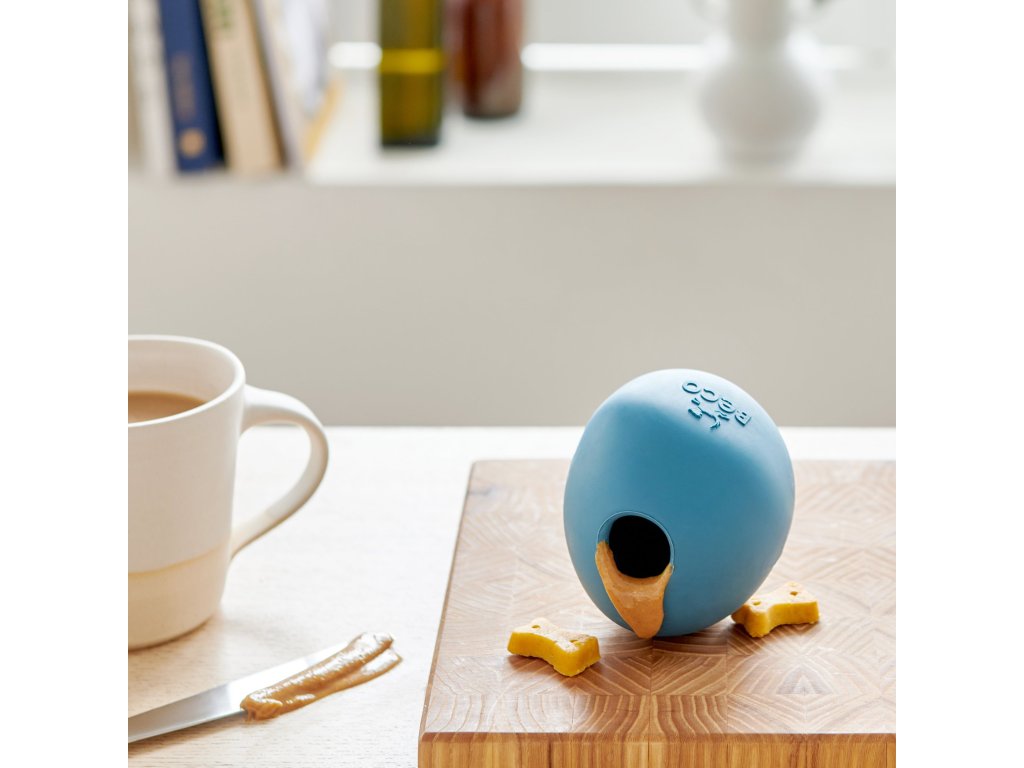 Míček z přírodního kaučuku, který se odráží, kutálí a má extra otvor pro schování pamlsků. Lehká konstrukce hračky ji předurčuje také pro hry v bytě či domě. Je vyrobena z pružného přírodního kaučuku, který nabízí to nejlepší z přírody. Hračky z něj jsou dostatečně pevné, odolné a pružné, aby byly vhodné i pro vytrvalé žvýkače. Hračku můžete naplnit ořechovým máslem, paštikou nebo pamlsky a užít si chvilku klidu.