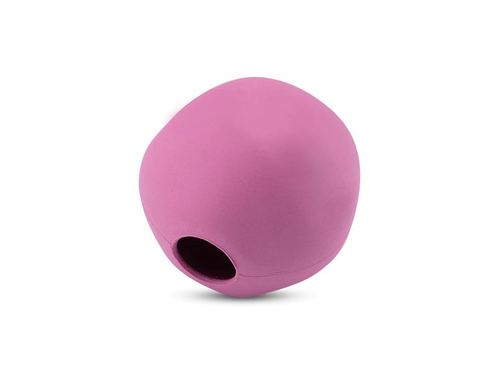 Míček nepravidelného tvaru z přírodního kaučuku, s vanilkovou vůní a otvorem pro ukrytí pamlsků. Průměr míčku 7,5 cm.