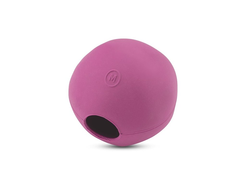 Míček nepravidelného tvaru z přírodního kaučuku, s vanilkovou vůní a otvorem pro ukrytí pamlsků. Průměr míčku 6,5 cm.