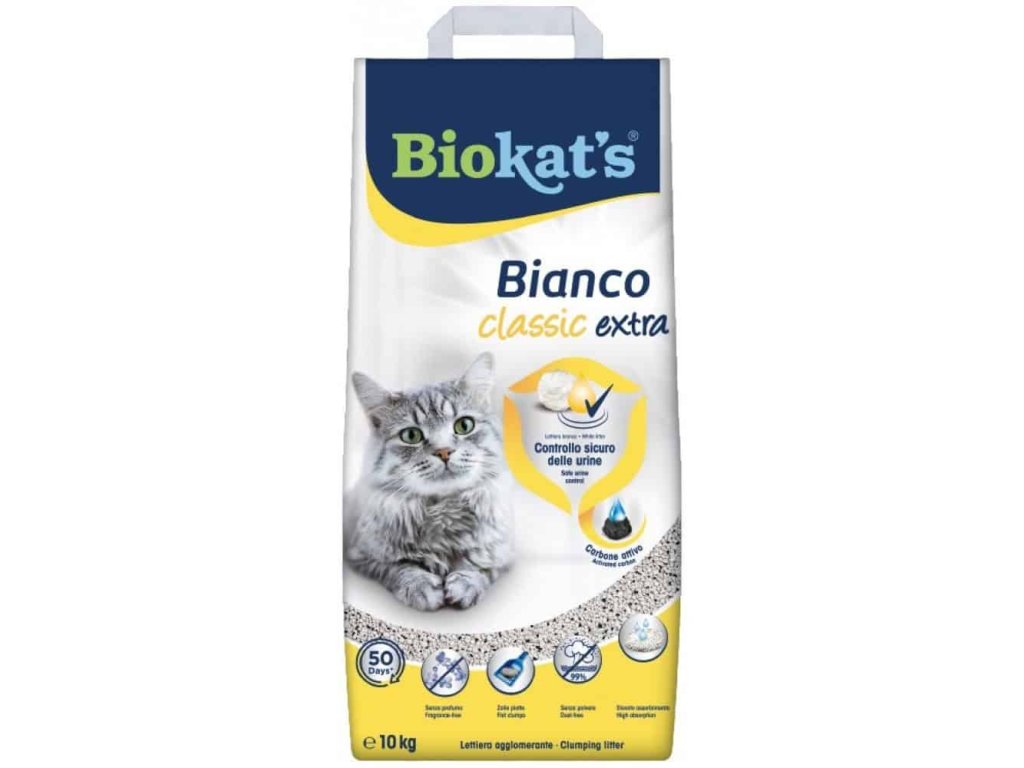 Biokat’s Bianco Extra Classic podestýlka pro kočky 10 kg - extrémní savost s aktivním uhlím
