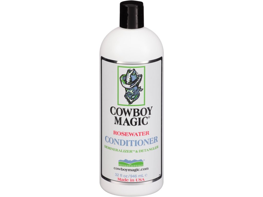 COWBOY MAGIC® Rosewater Conditioner je novou inovací na trhu s koňskou kosmetikou. Neutralizace problémového povrchu a ošetření vlasů je již mnoho let běžná součást péče v kadeřnických salonech. Výsledkem používání kondicionérů jsou krásné a zdravé vlasy. Nyní tuto péči máme i pro koňskou srst.