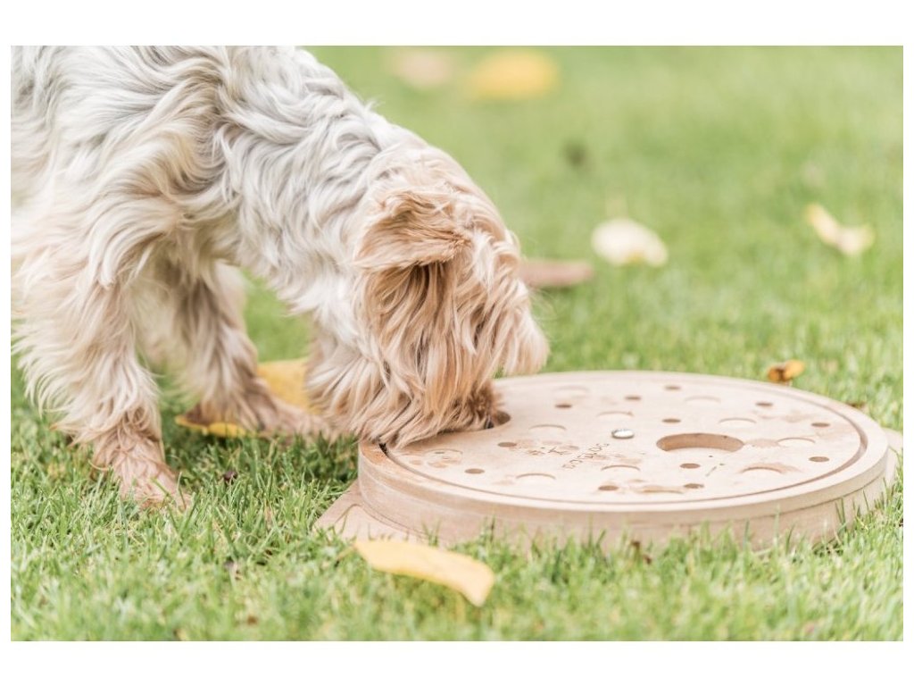 Nejprve je nutné odstranit kulatý kámen tahem nahoru a až pak je možné otáčet celou horní deskou po a proti směru hodinových ručiček. Po každém podařeném tahu přichází zasloužená odměna, kterou ocení každý pejsek. Velký malý, nahý nebo chlupatý, přijde na to opravdu každý.