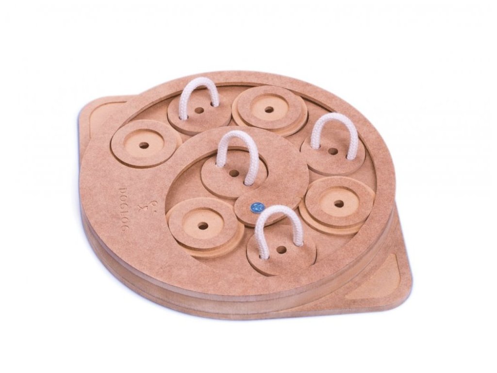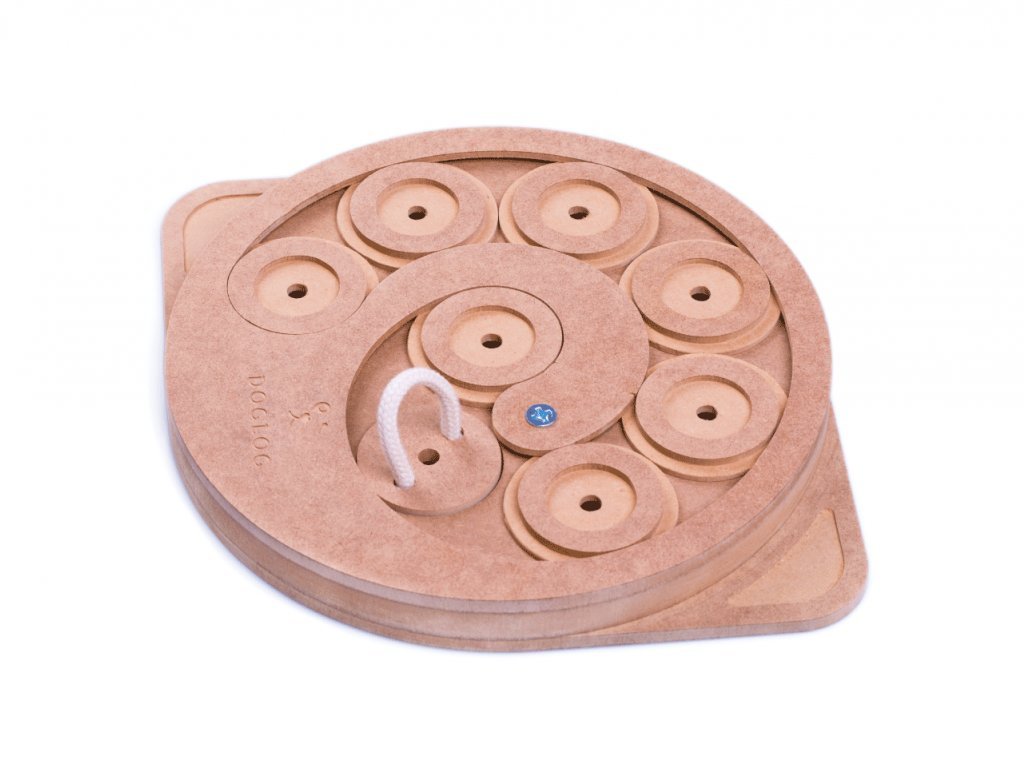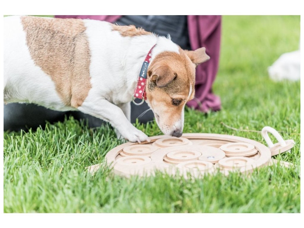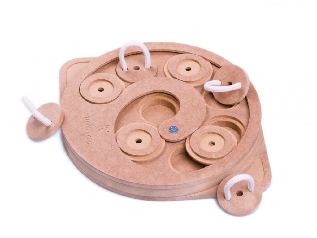 Tato hra sice vyžaduje notnou dávku soustředění a psí trpělivosti, ale až v té nejvyšší obtížnosti. Do ní Váš chlupáč dospěje zábavným tréninkem. Stačí k tomu jen mňaminky a šroubovák. :) Všechny posuvné kameny lze po odšroubování středu vyndat. Vy sami si rozhodnete, jak vysokou obtížnost hlavolamu nastavíte. Variabilita je opravdu široká. Od easy až po hard. Až zvládne i ten nejtěžší level, můžete mu hlavolam připravovat dle vlastní potřeby.