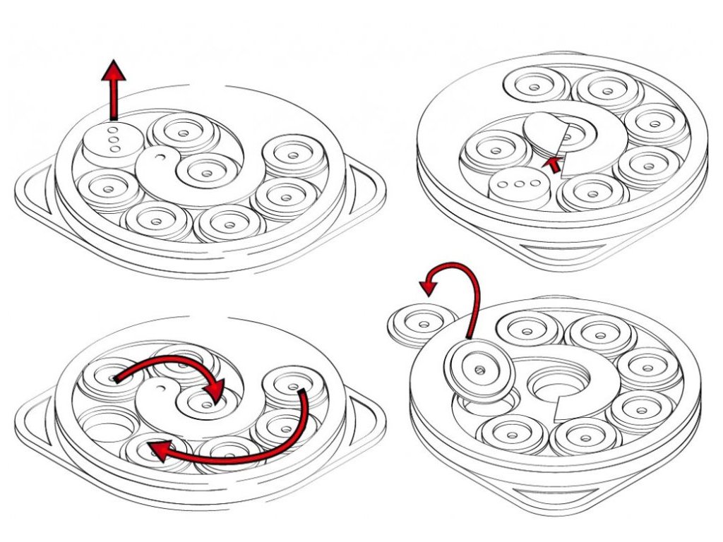 Nejprve je nutné odstranit 1-4 kulaté kameny s provázkem (podle obtížnosti) tahem nahoru a až pak je možné posouvat po nebo proti směru hodinových ručiček ostatní hrací kameny v drážce. Po každém podařeném tahu přichází zasloužená odměna v podobě vybraného pamlsku.