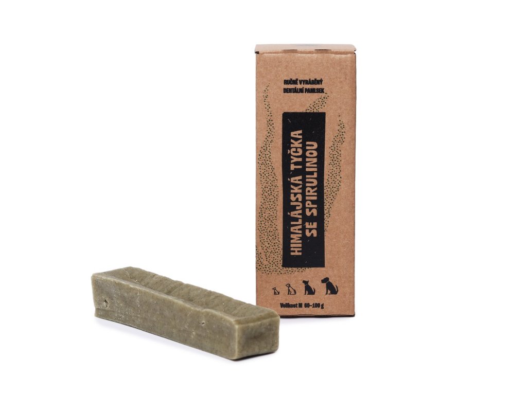 Oblíbená Himalájská tyčka od Dogsie dostala zelený kabátek! Tentokrát jsme ji obohatili o spirulinu – přírodní superpotravinu, která podporuje imunitu, zdravé trávení i svěží dech. Stejně jako klasická varianta je i tato tyčka extra tvrdá a dlouhotrvající. Díky výrobě z kvalitního belgického mléka od kraviček z pastvin a pomalému sušení po dobu až 3 měsíců se při žvýkání a slinění postupně obrušuje a měkne, takže si ji pejsek bezpečně užije a přitom si čistí zuby.