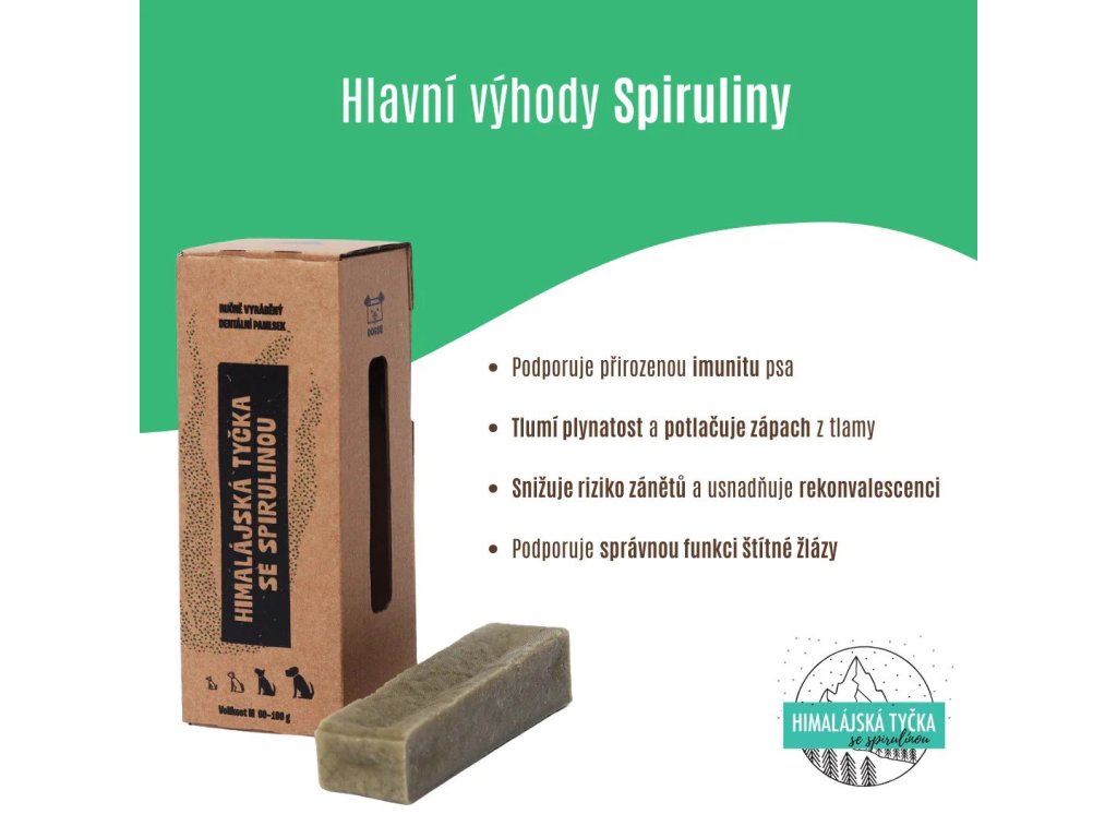 Oblíbená Himalájská tyčka od Dogsie dostala zelený kabátek! Tentokrát jsme ji obohatili o spirulinu – přírodní superpotravinu, která podporuje imunitu, zdravé trávení i svěží dech. Stejně jako klasická varianta je i tato tyčka extra tvrdá a dlouhotrvající. Díky výrobě z kvalitního belgického mléka od kraviček z pastvin a pomalému sušení po dobu až 3 měsíců se při žvýkání a slinění postupně obrušuje a měkne, takže si ji pejsek bezpečně užije a přitom si čistí zuby.