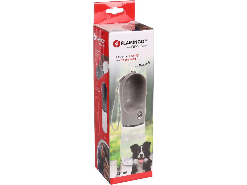 Flamingo Archie Cestovní napáječka pro psy šedá 400ml