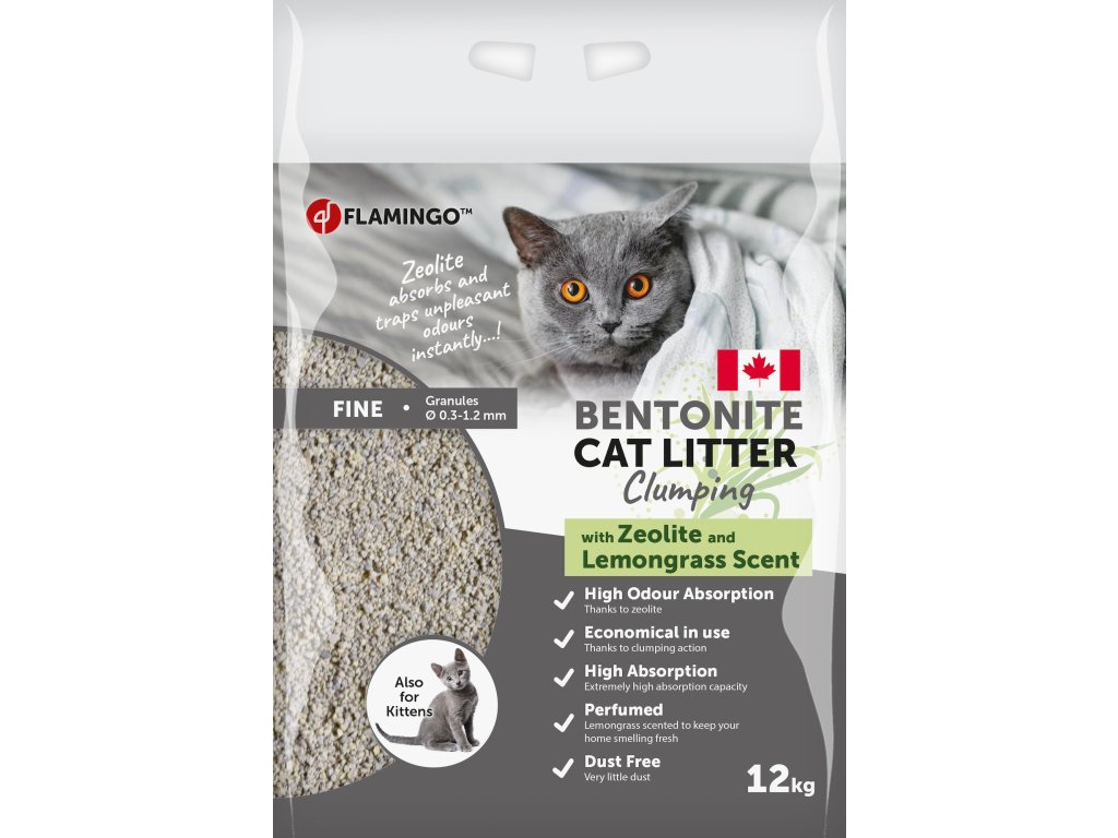 Flamingo Bentonitová podestýlka pro kočky s vůní citronové trávy 12kg