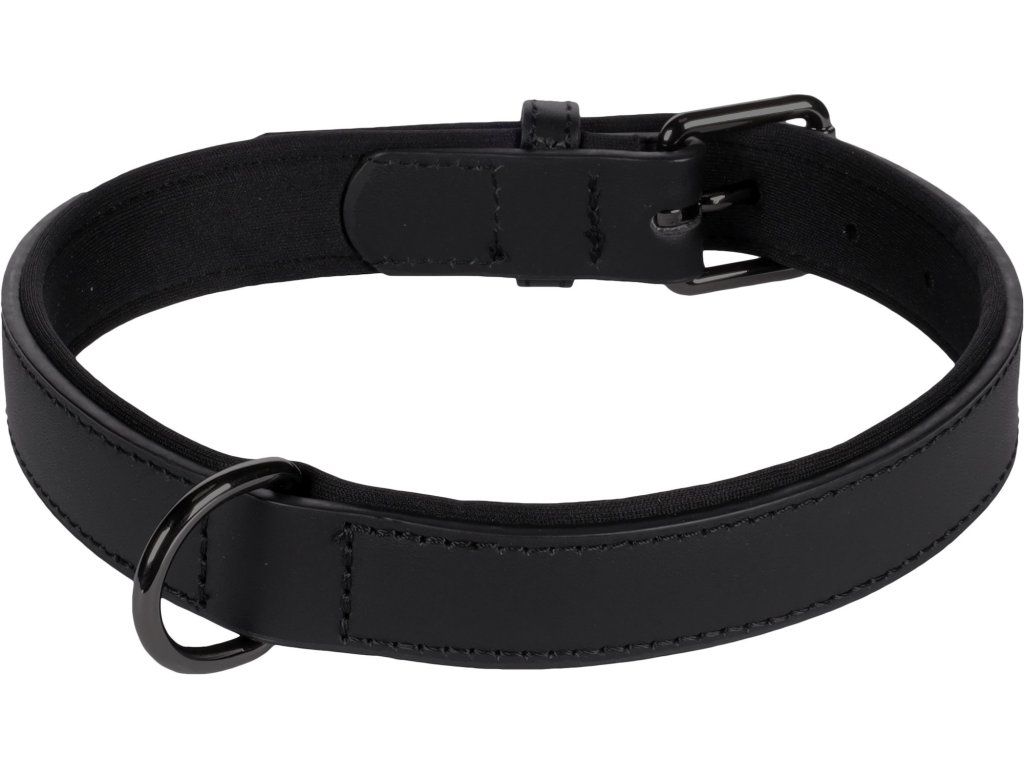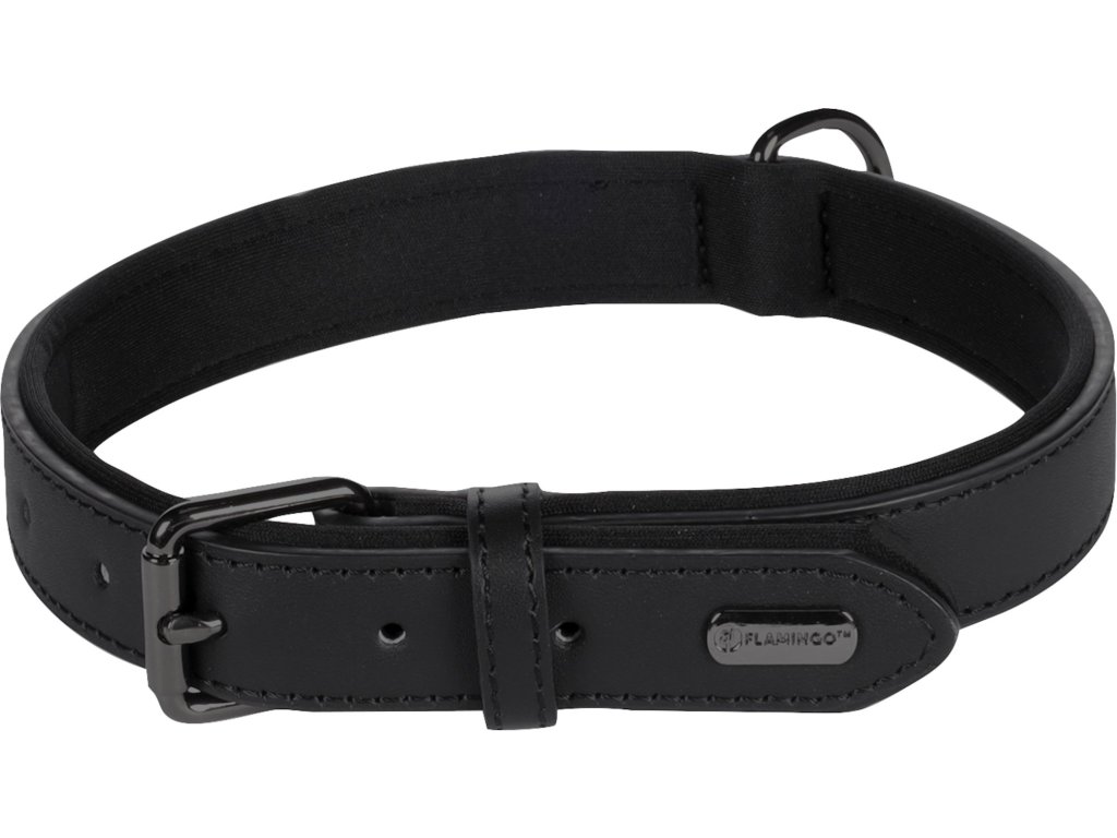 Flamingo Binti Kožený obojek s neoprenem Černá L