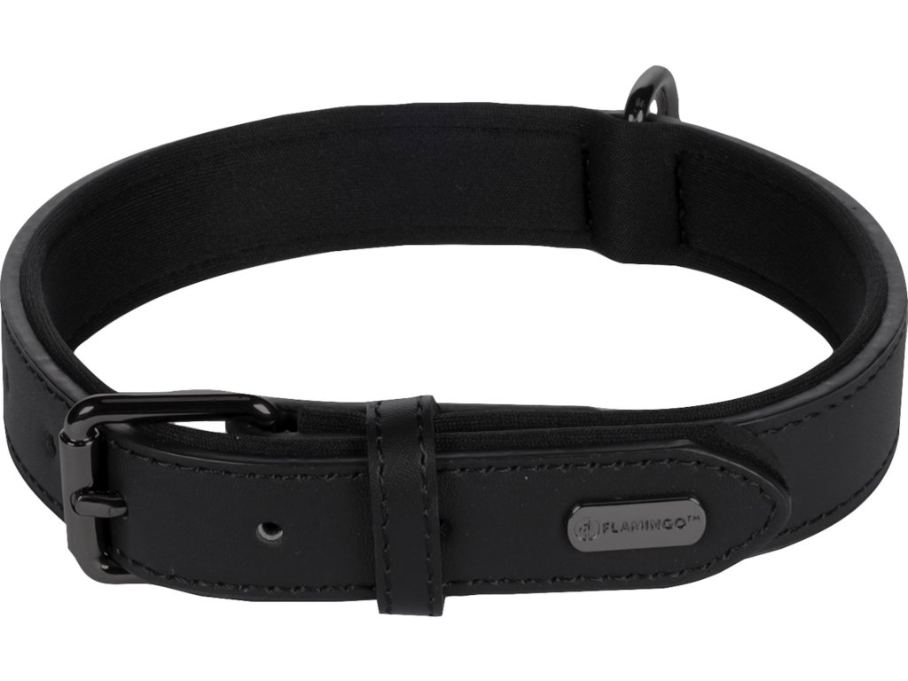 Flamingo Binti Kožený obojek s neoprenem Černá M/L