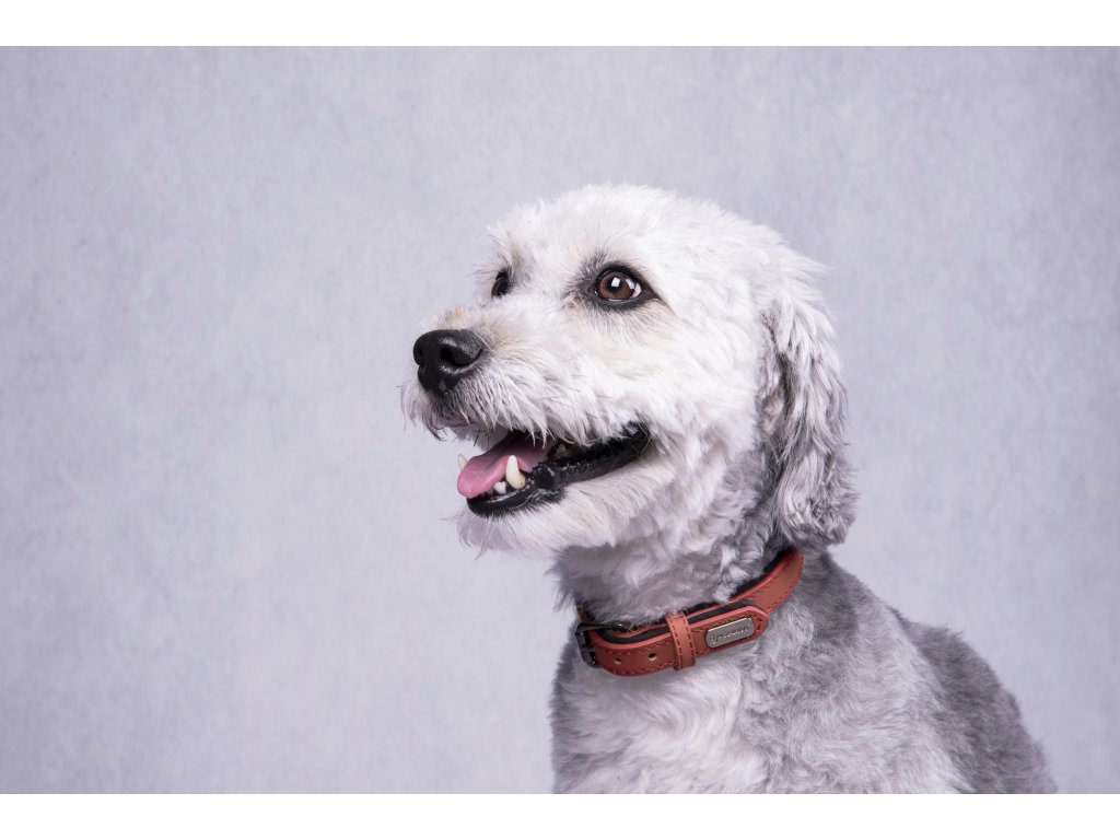 Flamingo Binti Kožený obojek s neoprenem Červená S/M