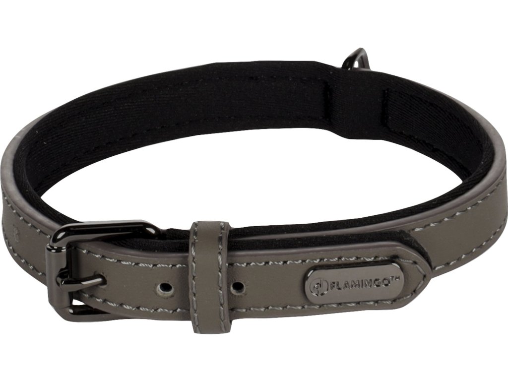 Flamingo Binti Kožený obojek s neoprenem Šedá S