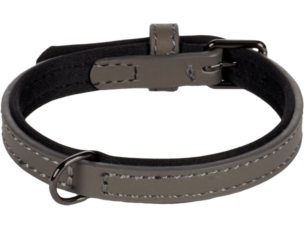 Flamingo Binti Kožený obojek s neoprenem Šedá XS