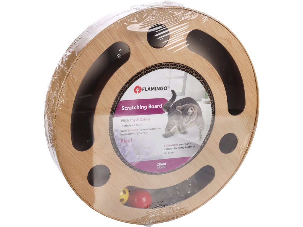 Nechte svou kočku škrábat a hrát si s kruhovou verzí Crabi od Flaminga! Vyrobeno z pevného kartonu a catnipu, který zvyšuje atraktivitu hračky. Zvonící míčky poskytují ještě více zábavy a podporují lovecký instinkt Vaší kočky.