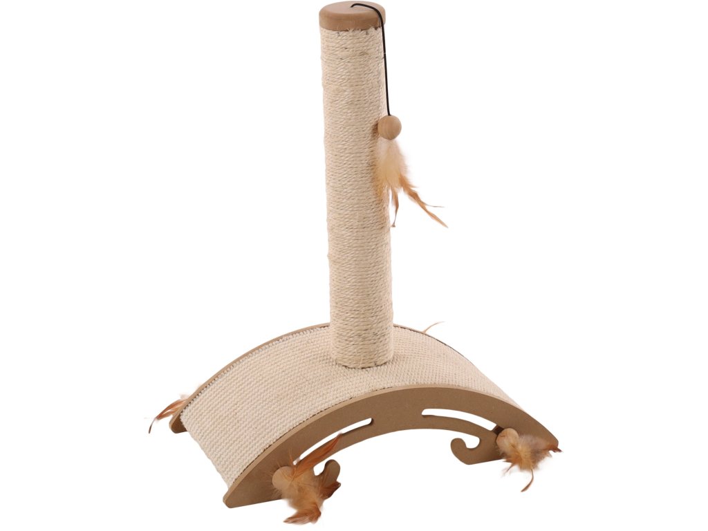Ideální záležitost proti nudě Vaší kočky! Škrabadlo je vyrobeno z MDF a pevného sisalového lana o tloušťce 4 mm. Atraktivitu zvyšují lákavé hračky a peříčka, které se postarají o extra zábavu.