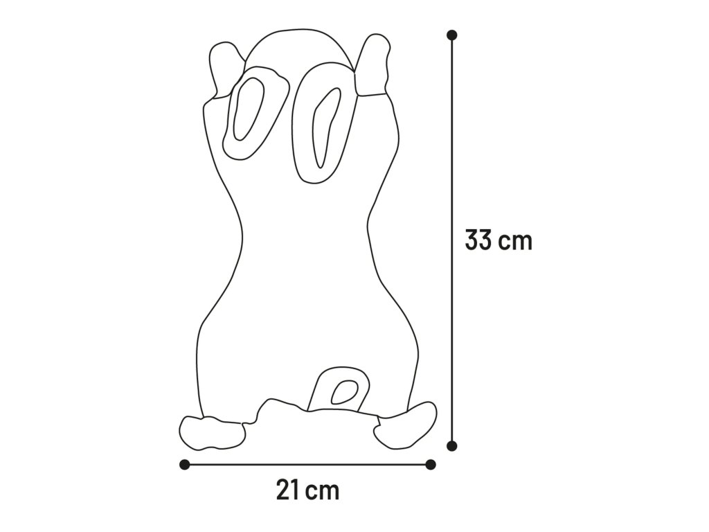 Plyšová hračka bez výplně, se zvukem. Celková délka 33 cm.