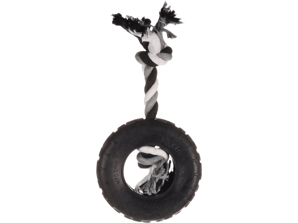 Zábavná hračka z přírodního kaučuku doplněná o bavlněné lano pro extra zábavu.