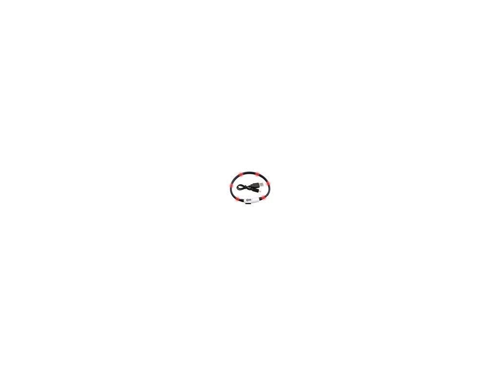 LED světelný obojek černý viditelný až cca 500 m. Dobíjecí baterie pomocí USB kabelu - žádné jiné baterie nutné - voděodolná - blikající světlo nebo kontinuální světlo. Velikost 20-35 cm
