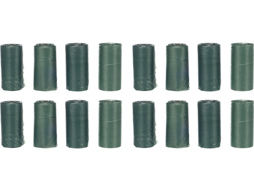S těmito zelenými sáčky budete ekologičtější a vždy připraveni na nečekaný „dárek" od Vašeho chlupatého kamaráda. Vyrobeno ze 65 % z recyklovaného plastu. Se 16 rolemi po 15 sáčcích jste dobře připraveni na každou procházku.