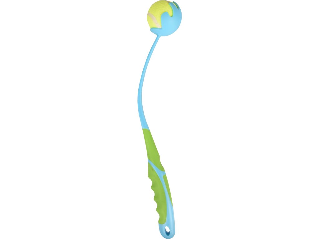 Vrhač míčků v modro/zeleném provedení včetně tenisového míčku.
