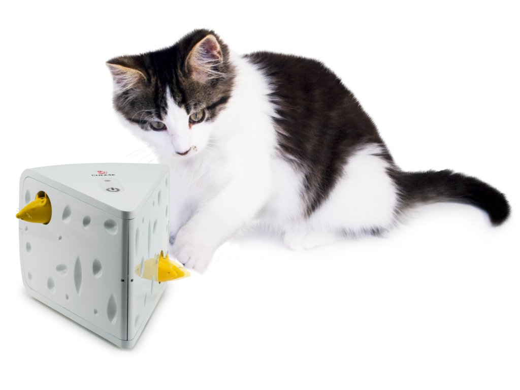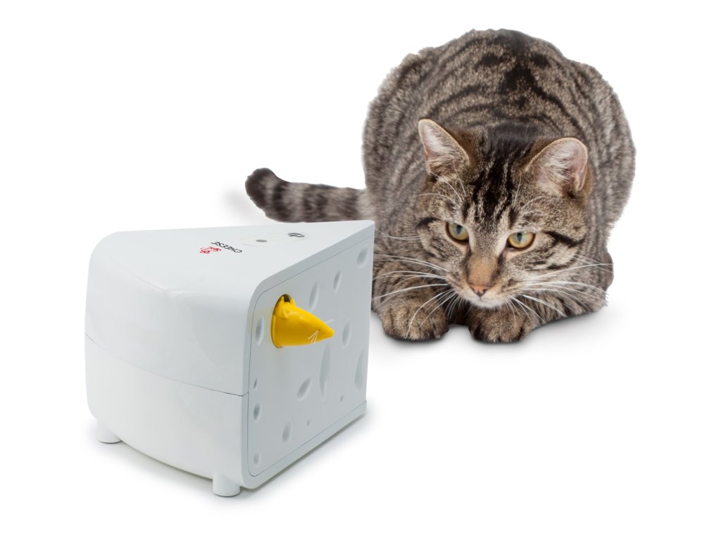 Tuto vzrušující hru na lov budou vaše kočky milovat. 2 myšky se schovávají a vykukují z bloku švýcarského sýru. Pro chvíle plné zábavy i ve vaší nepřítomnosti použijte funkci "Play While You Are Away“ (tento režim umožňuje náhodné spuštění hračky během dne). V režimu "One-Time-Play Mode" se hračka automaticky vypne po 10-15 minutách.