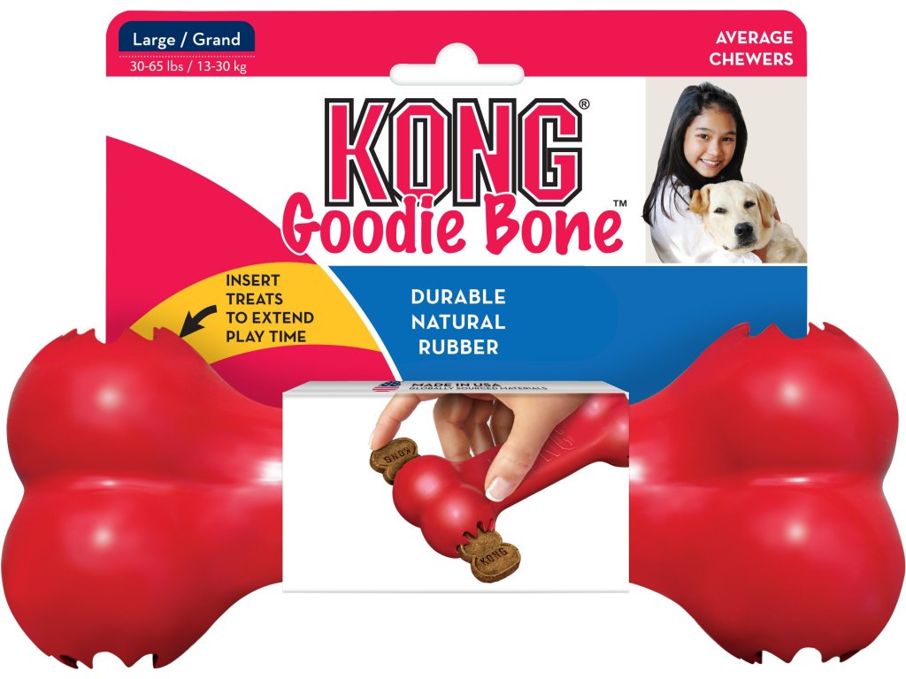 Hračka KONG Goodie kost je určena psům, kteří milují klasický tvar kosti, ale potřebují bezpečnou gumovou hračku. Je vyrobena z přírodní pryže, a psi tak mohou žvýkat do sytosti. Chcete svému čtyřnohého kamarádovi prodloužit dobu zábavy a objevování? Naplňte konce hračky pamlsky. Díky této funkci se hračka pro psa stane zábavnou výzvou.
