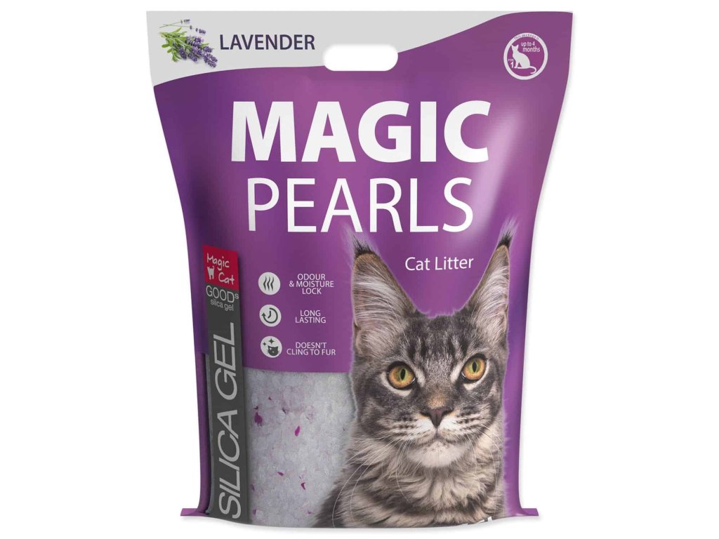 MAGIC PEARLS Lavender je kvalitní silikátové stelivo pro kočky, které spojuje vysokou savost, účinnou neutralizaci pachů a příjemnou levandulovou vůni.