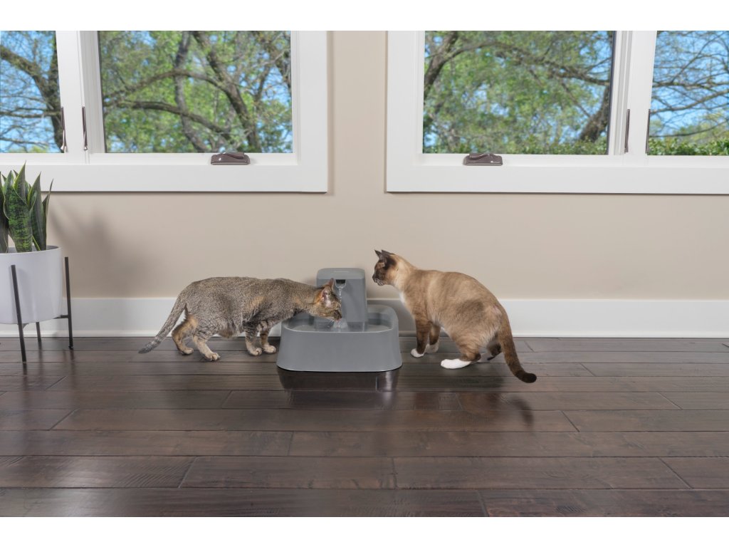 - Podporuje hydrataci – volně padající proud vody láká domácí mazlíčky k většímu příjmu tekutin a pomáhá tak předcházet onemocněním močových cest a ledvin prostřednictvím zvýšené hydratace