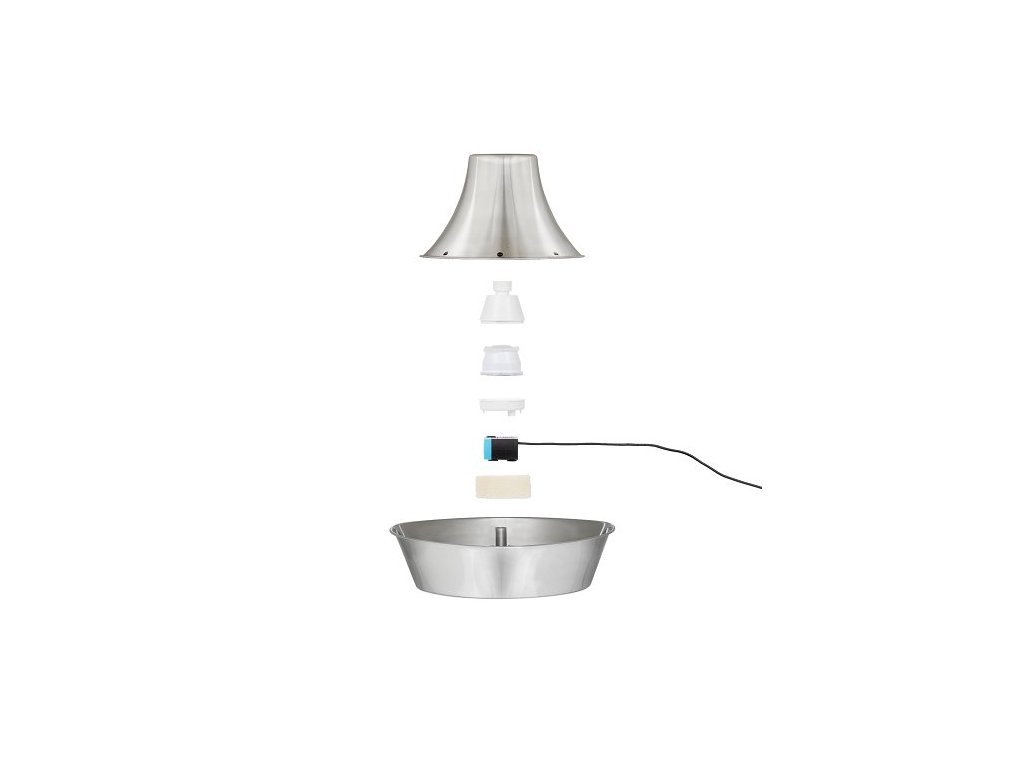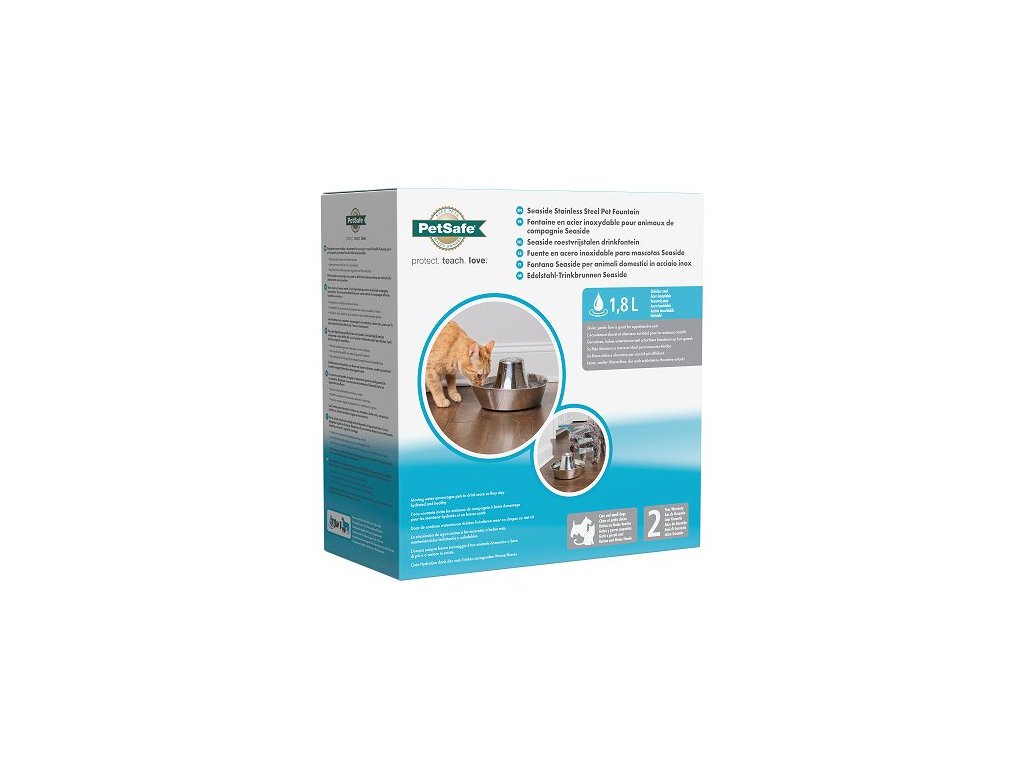 Pomozte svému mazlíčkovi zůstat šťastným, zdravým a hydratovaným díky fontánce PetSafe® Seaside, která je vyrobená z nerezové oceli. Fontánka poskytne vašemu mazlíčkovi čerstvou filtrovanou vodu. Kočky a psy přitahuje tekoucí voda, která je povzbuzuje k častějšímu pití, a tím podporuje jejich celkové zdraví. Tato fontánka pro domácí zvířata pojme 1,8 litru vody a má tak ideální velikost pro kočku nebo malého psa. Tichý chod fontánky zajišťuje, že voda nad věží jen jemně probublává (na rozdíl od volně padajícího proudu), což umožní i plachým nebo bázlivým kočkám cítit se pohodlně a rychle se s ní seznámit. Váš miláček si také může vybrat, jestli bude pít vodu z věže nebo misky. Fontána využívá čerpadlo, uhlíkový a pěnový filtr, které spolupracují na odstranění chlupů domácích zvířat, slin a pachutí z vody. Voda k pití tak zůstane vždy čistá. Nerezová fontána je vyrobena z vysoce kvalitních materiálů, které jsou hygienické a odolné vůči poškrábání a rzi. Když nastane čas fontánku vyčistit, umístěte nerezovou věž a misku do horní police vaší myčky nádobí. Čerpadlo vyčistěte ručně.