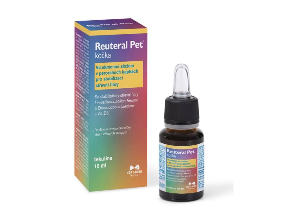 Reuteral Pet pro kočky je vícekmenový probiotický doplněk krmiva určený k stabilizaci střevní mikroflóry koček všech věkových kategorií. Obsahuje specifické probiotické kmeny Limosilactobacillus reuteri a Enterococcus faecium, které jsou přirozeně adaptované na trávicí trakt koček.