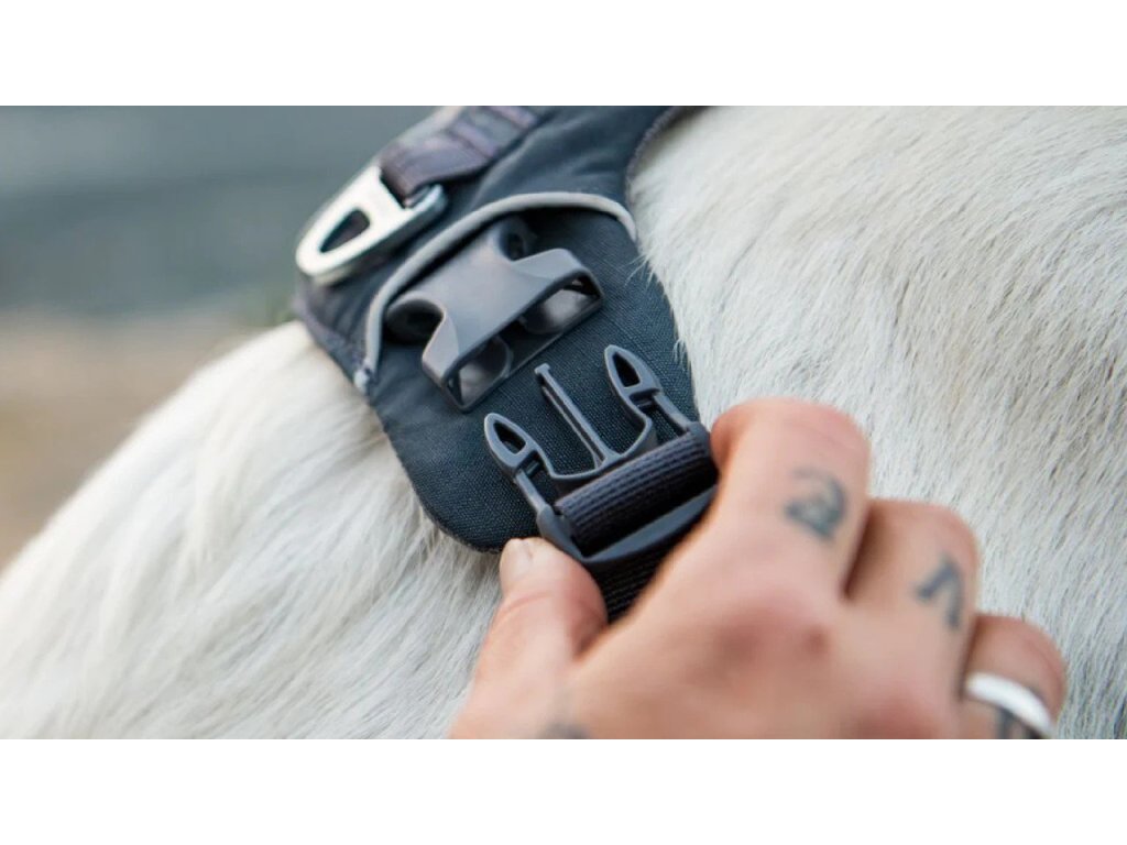 Postroj nabízí dvě možnosti připevnění vodítka: V-kroužek uprostřed na zádech psa pro každodenní procházky a zesílený popruh na hrudi pro výcvik nebo lepší kontrolu nad psem.