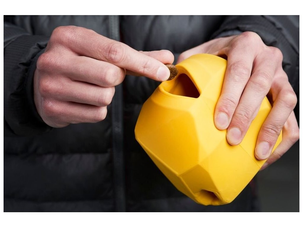 Vypadá jako kus obsidiánového kamene z lávových řek v okolí Oregonu, ale je to hračka pro psy! Odolná, inspirovaná přírodním vulkanickým sklem tvořeným rychle chladnoucí lávou ze sopek na severozápadním pobřeží Pacifiku. Je vyrobena z přírodního kaučuku s fazetovým povrchem pro masírování dásní. Její nepředvídatelný odraz při dopadu se postará o extra zábavu, a navíc do ní můžete skrýt pamlsky pro interaktivní hru s odměnou. Průměr 11,5 cm.